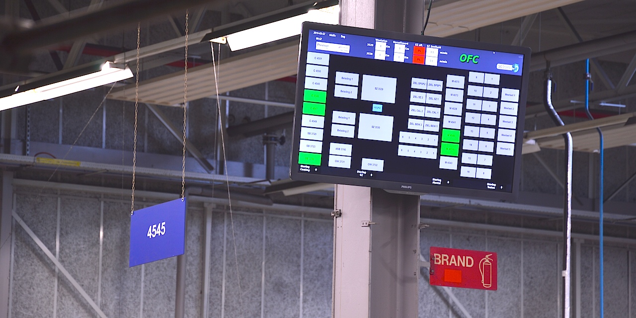 The digital signboard signals the status of a working station. An Alert can be triggered by hand or automatically by the machines. An Andonboard informs Management, maintenance and operators about the current status of a process.
